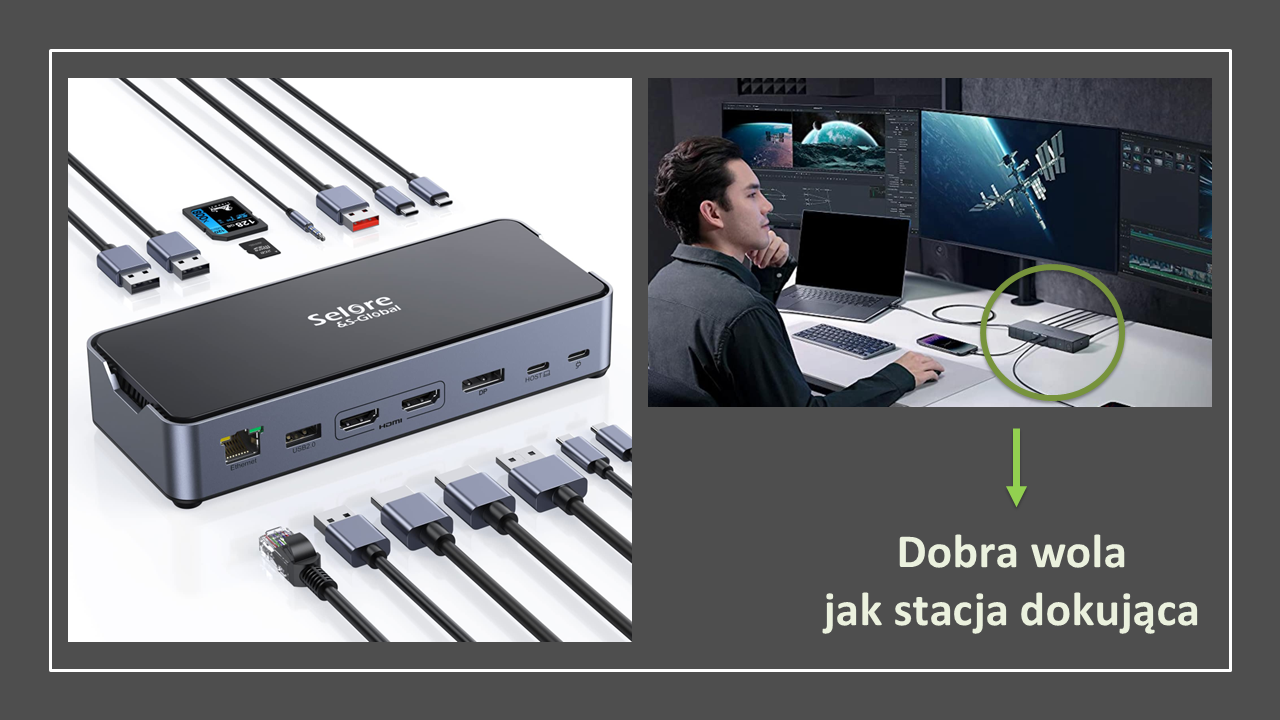 Dobra wola w miłości jest jak stacja dokująca w technologii. Takie centrum lub taka stacja miłości to zawsze dobra wola, a różne zalety są do niej dodawane lub odejmowane w zależności od potrzeby (jak w tym przykładzie z rodzicami). Tak jak stacja dokująca łączy sprzęty, tak dobra wola spaja różne zalety w miłości i pozwala na ich wspólne działanie.