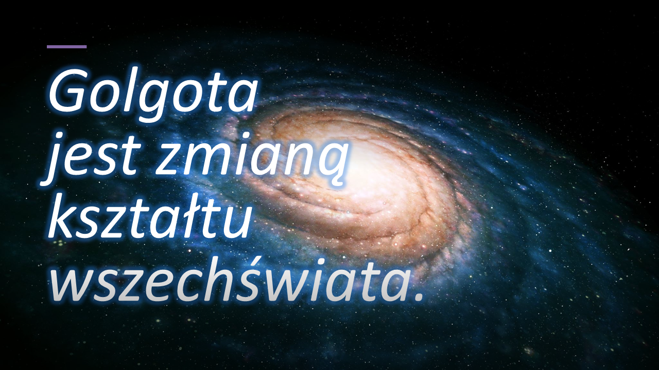 Ktoś określił to tak, że „Golgota jest zmianą kształtu wszechświata”. Oczywiście, z punktu widzenia Boga nic się nie zmieniło, bo On dalej realizował swój plan, który od początku był pełny miłości.